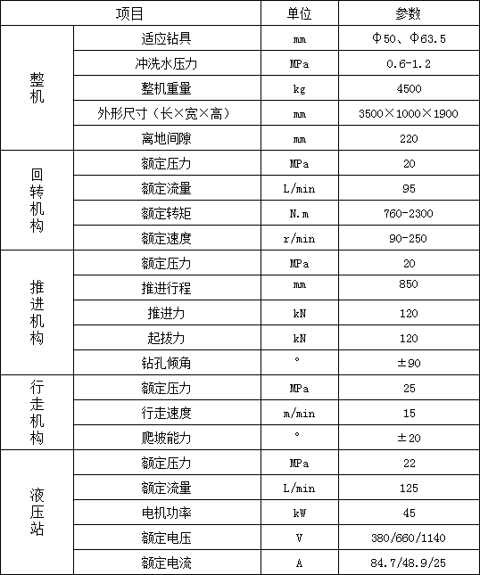 1. 履帶行走,大大提高移鉆、穩(wěn)鉆的效率,顯著減輕工人的體力勞動(dòng)強(qiáng)度;